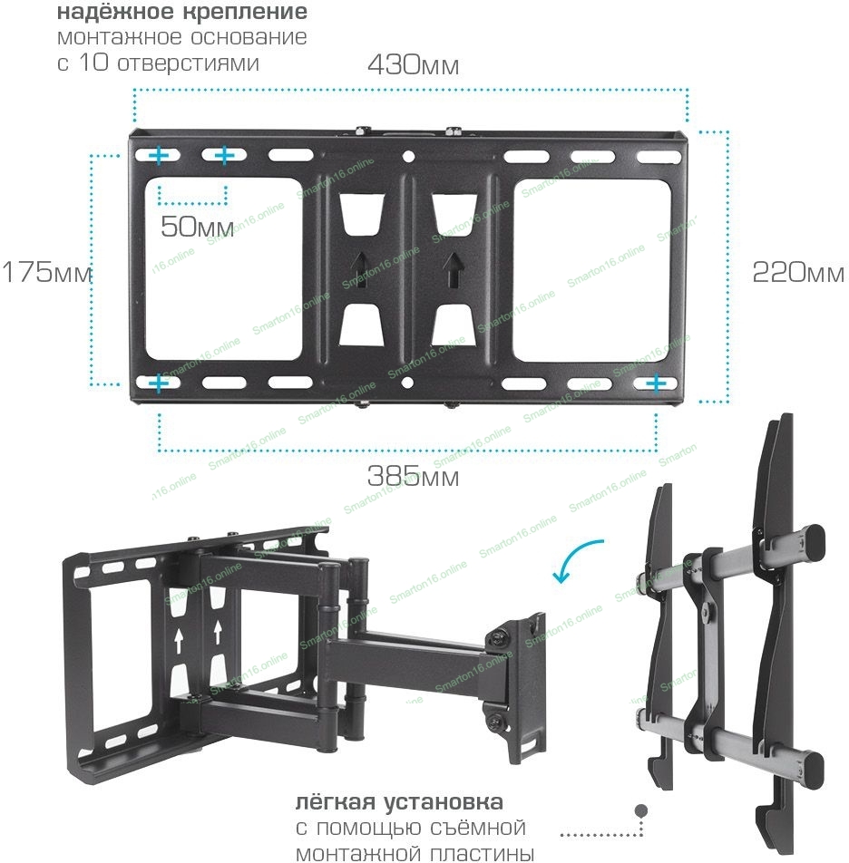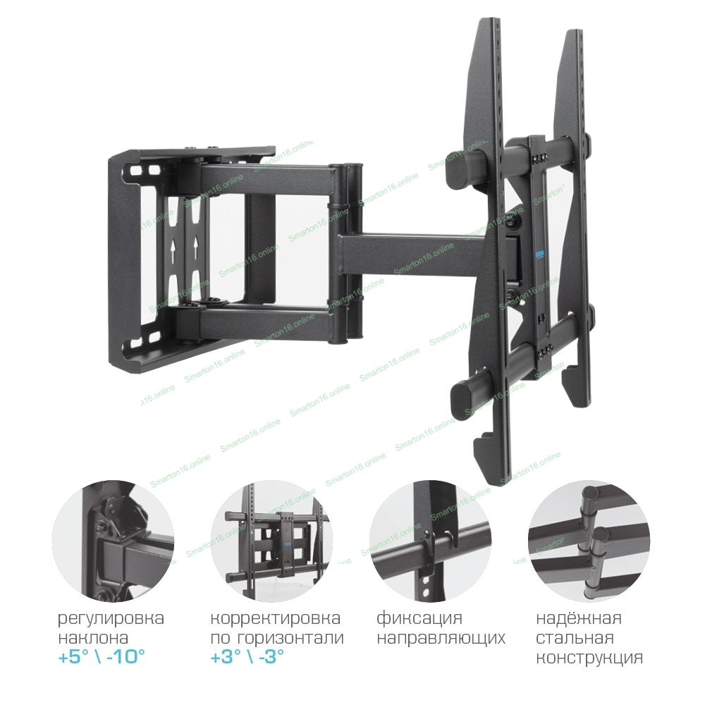 Кронштейн для телевизора Kromax GALACTIC-57 черный 32"-75" макс.60кг настенный поворотно-выдвижной и наклонный
