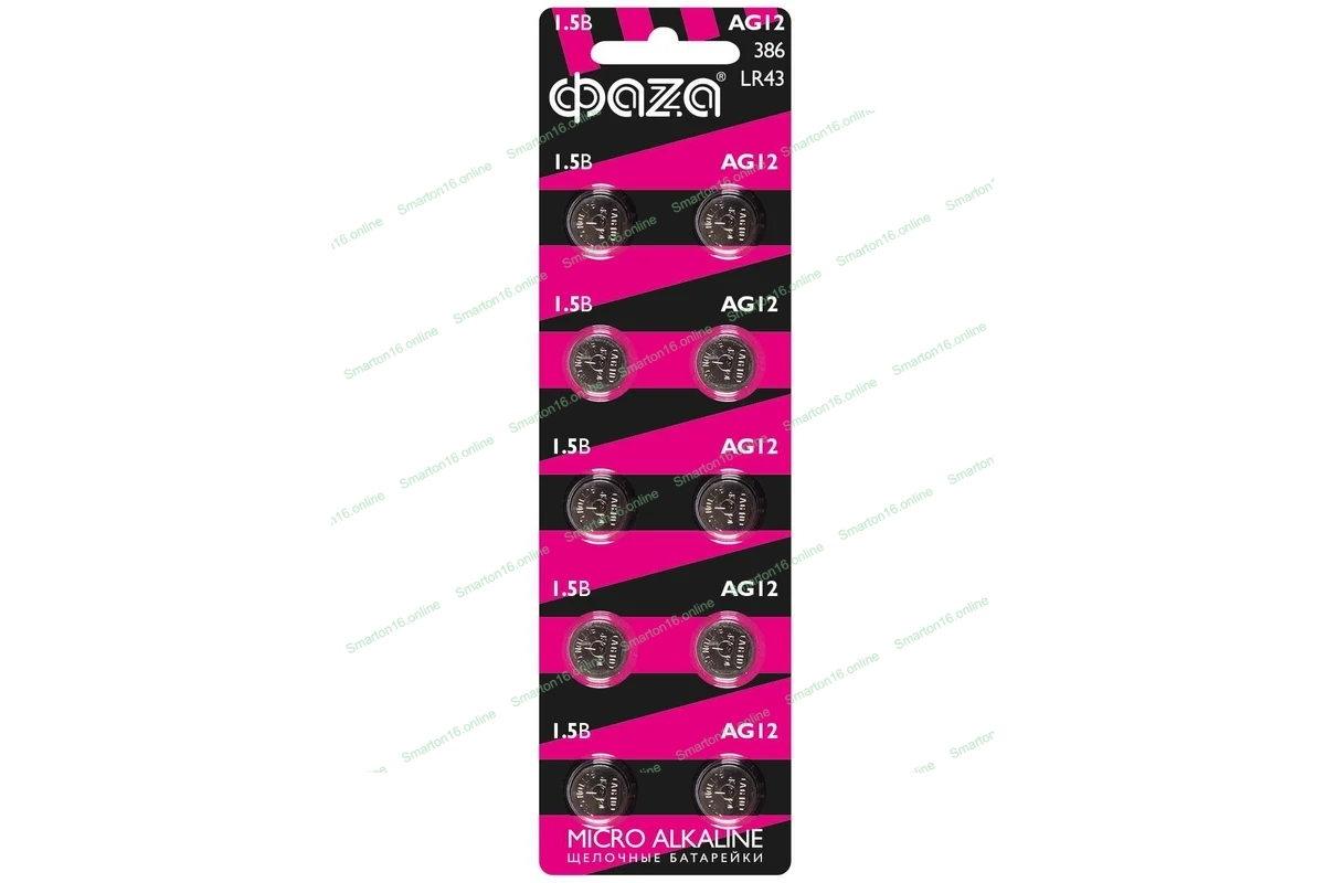Элемент питания алкалиновый "таблетка" LR43/AG12 BL-10 ФАZА 5002791, 1.5 В