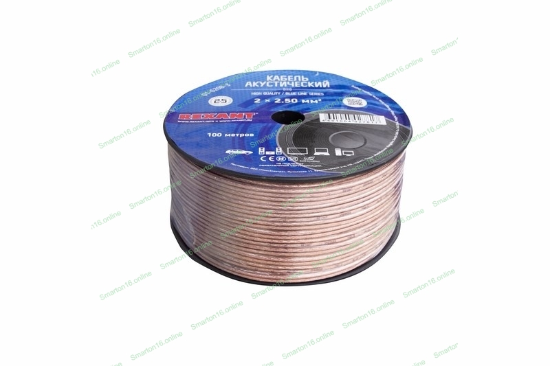 Кабель акустический Rexant 2х2.50 мм, прозрачный BLUELINE, 100 м