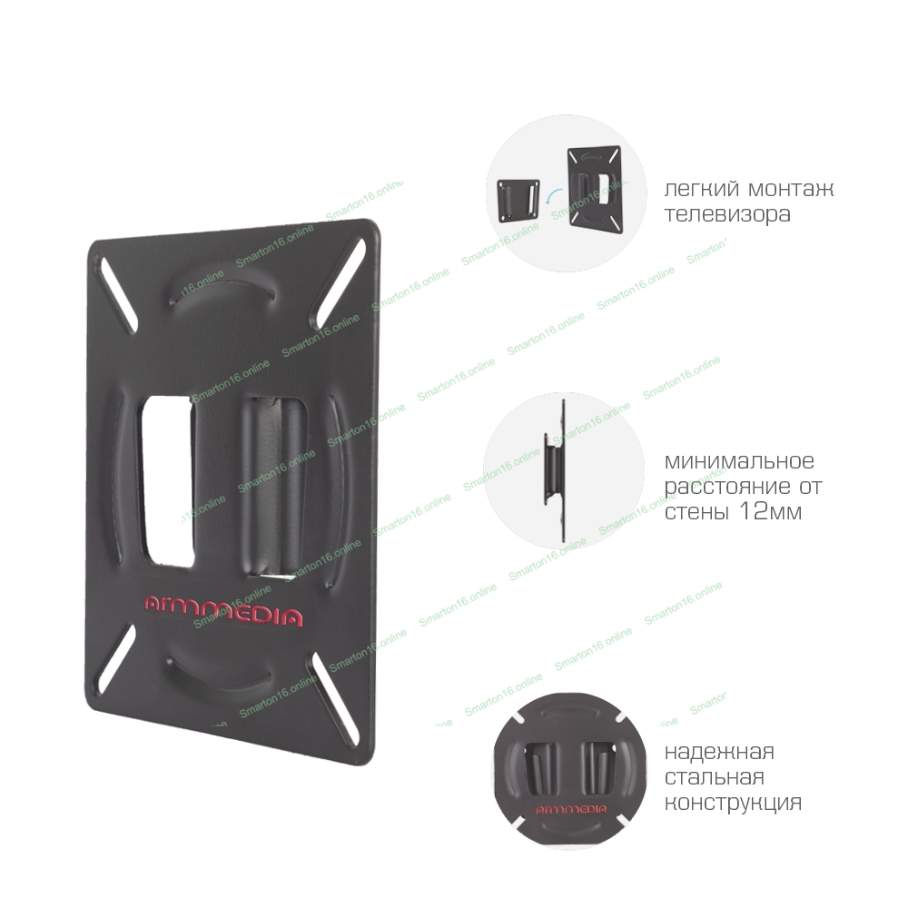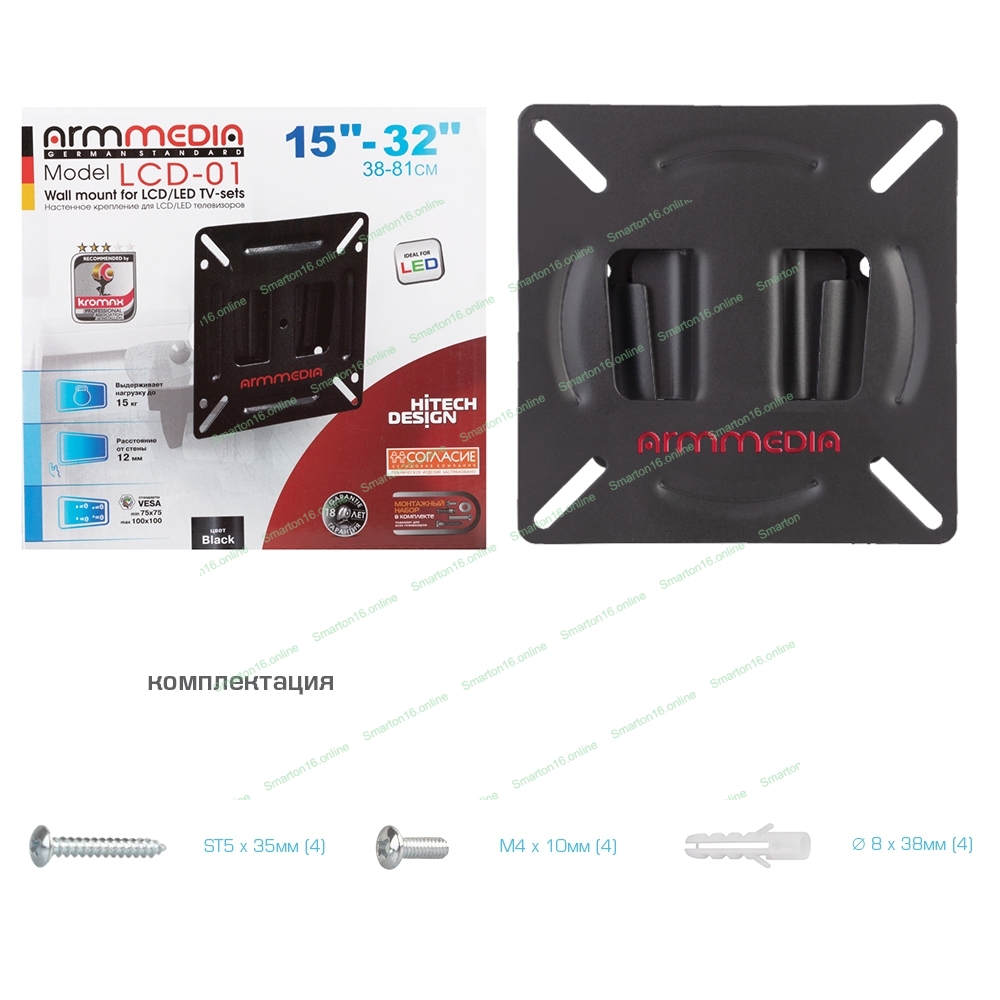 Кронштейн Arm media LCD-01 черный, 15-32", max 15 кг, настенный, от стены 12мм, VESA 100x100
