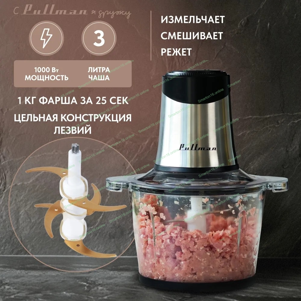 Измельчитель электрический Pullman PL-320, 1000Вт, 6 лезвий, стеклянная чаша 3 л