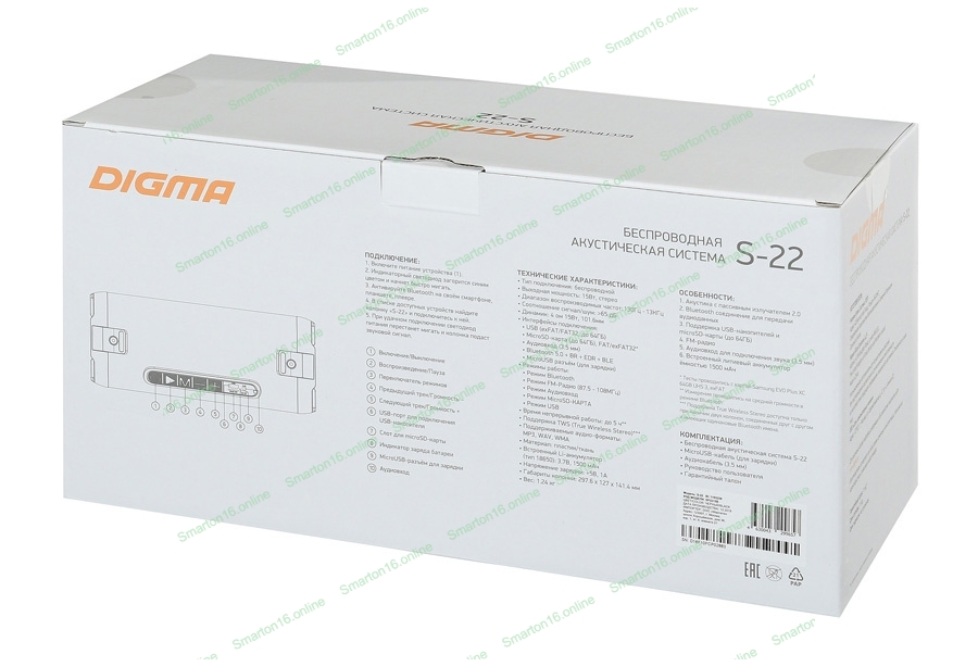 Колонка портативная Digma S-22 черный 15W 1.0 BT 1500mAh