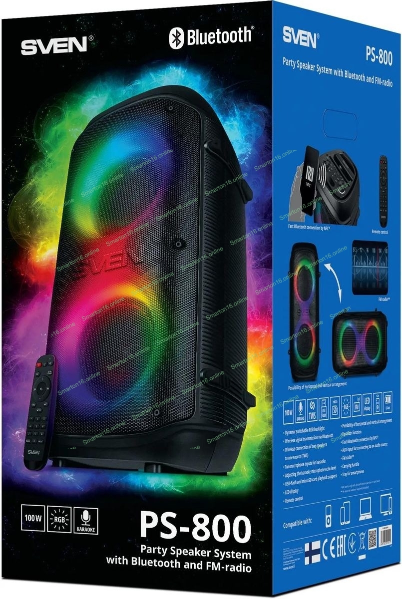 Колонка портативная SVEN PS-800 черный 100W 2.0 BT 10м 4400mAh