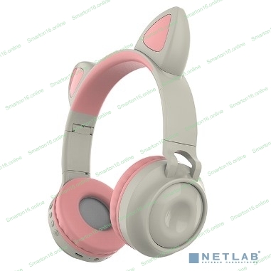 Беспроводные/проводные наушники QUMO Party Cat BT 0027 бежево-розовый, накладные, Bluetooth + проводной, кошачьи ушки, до 7 ч