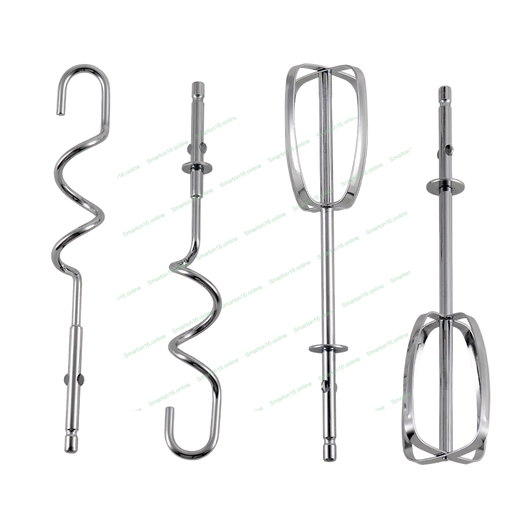 Венчик для взбивания, крюки для теста.Материал корпуса пластик.Кнопка отсоединения насадок.