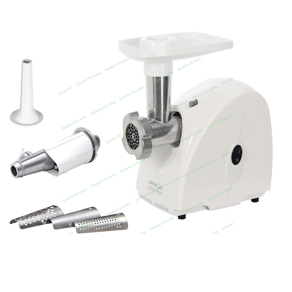 Мясорубка электрическая Аксион М32.04 белый, 1500 Вт, 1.7 кг/мин, защита от перегрузки, насадки - 2