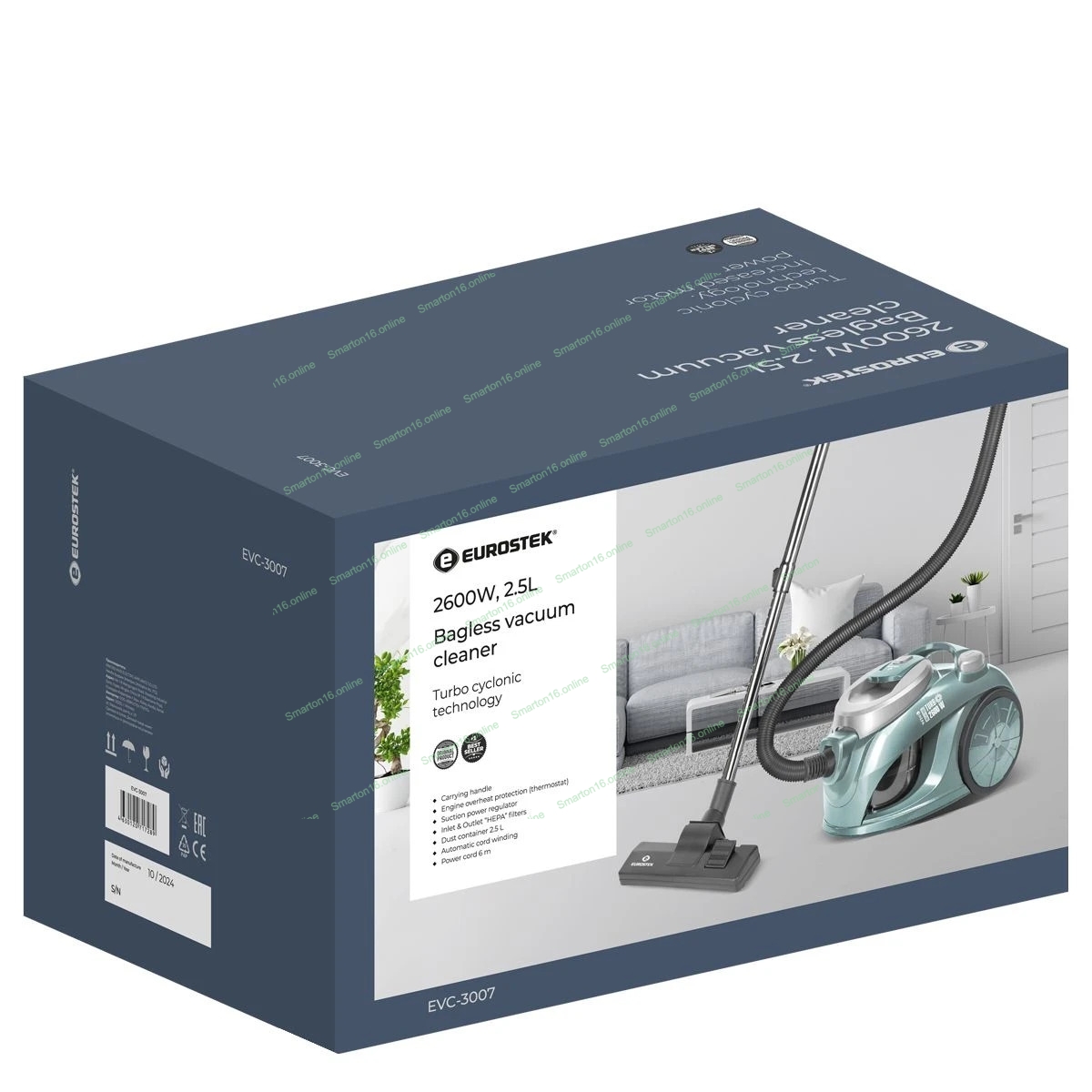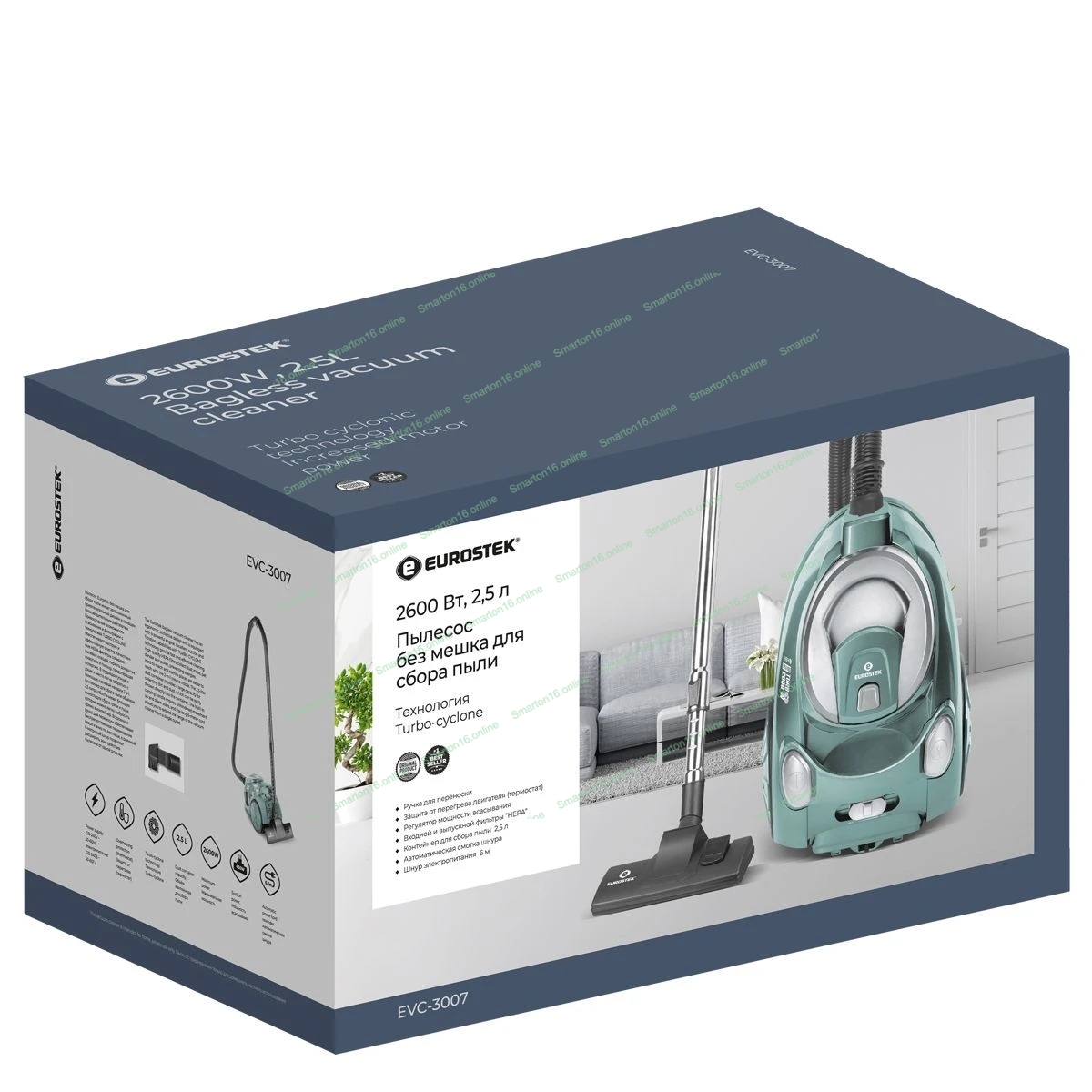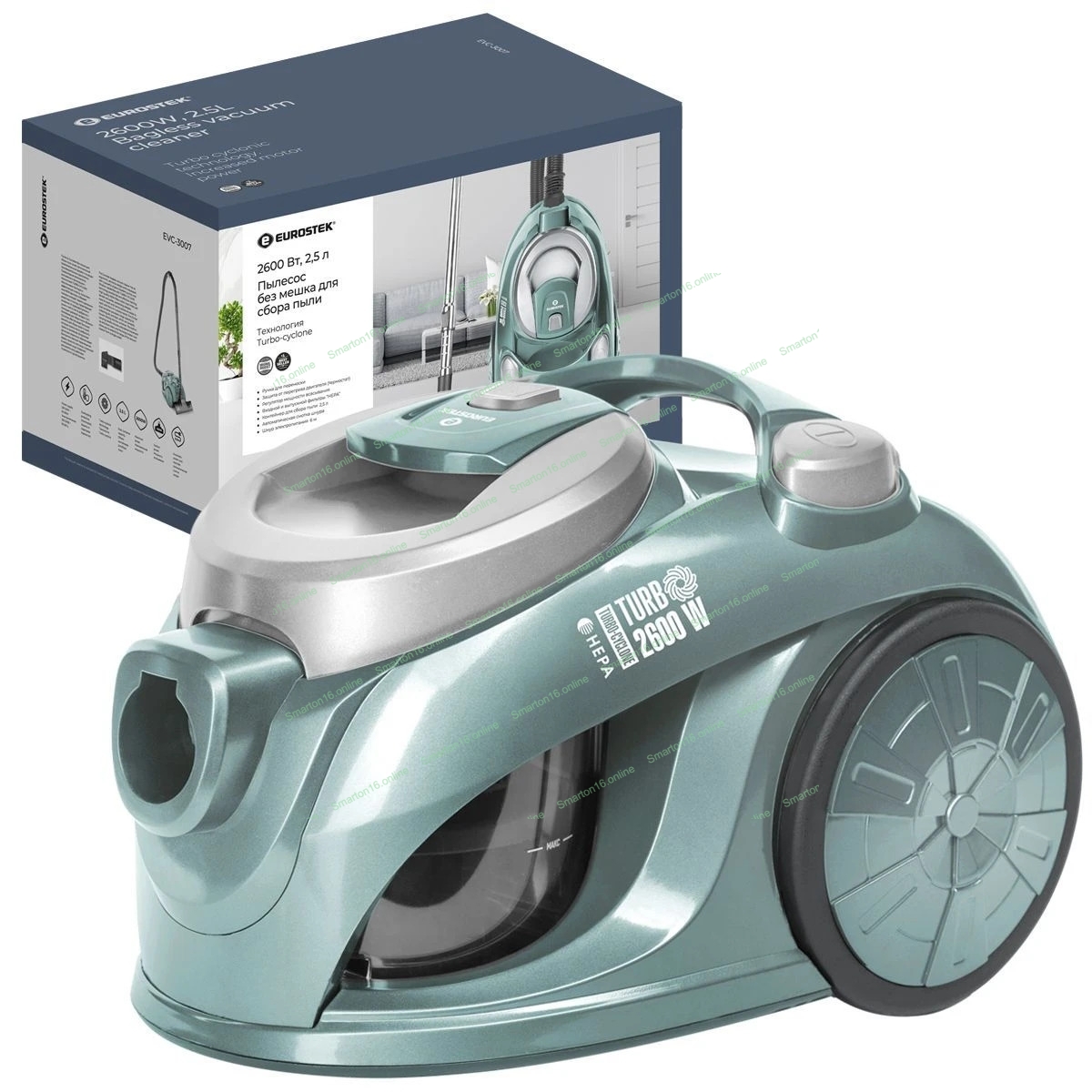 Пылесос Eurostek EVC-3007 изумрудный, 400/2600 Вт, уборка сухая, пылесборник контейнер 2.5 л