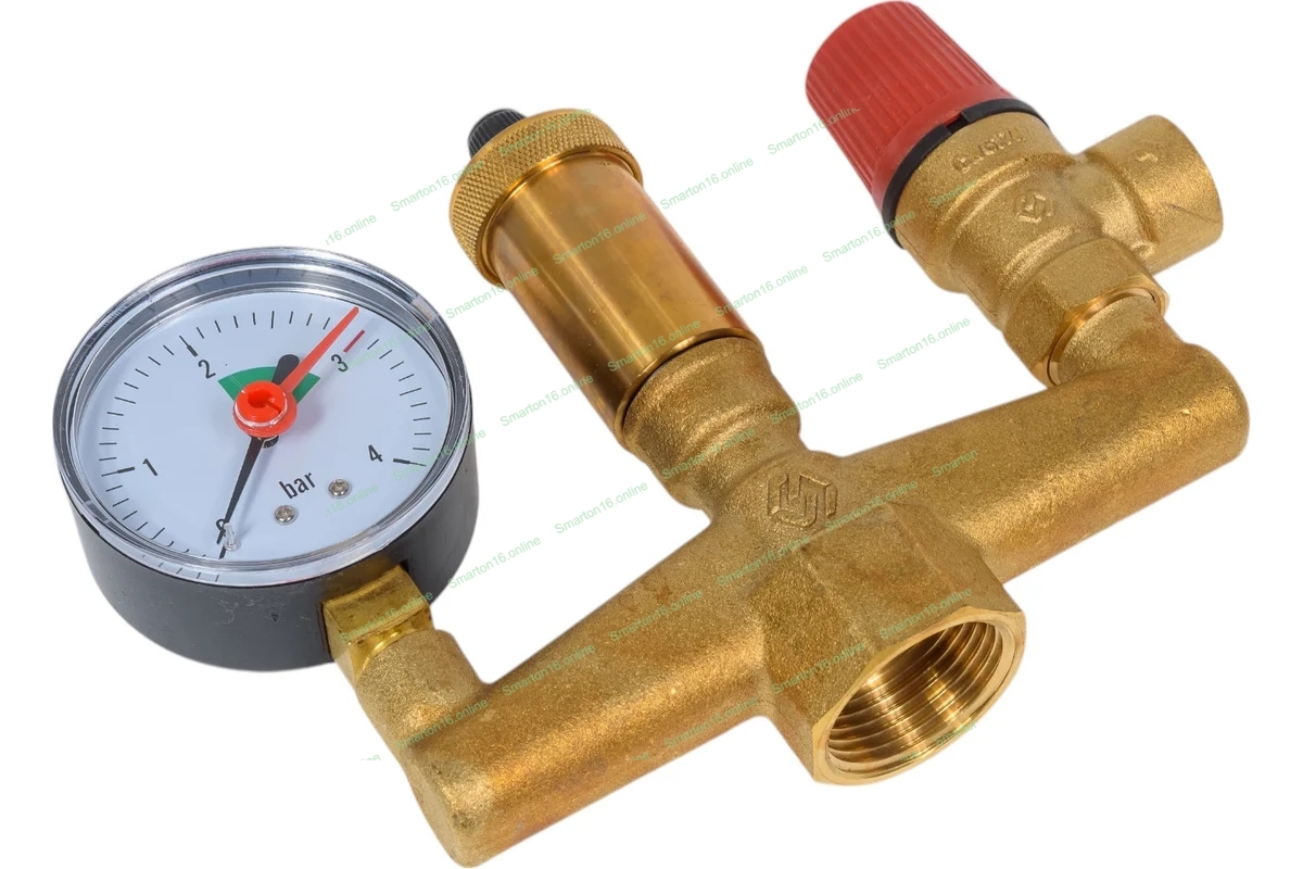 Группа безопасности котла 1' с манометром предохранительным клапаном и автоматическим воздухоотводчиком