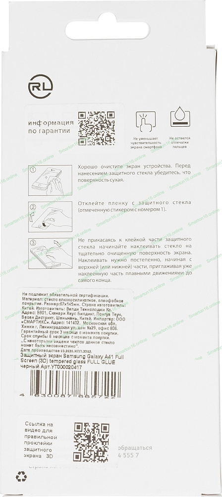 Защитное стекло для экрана Redline для Samsung Galaxy A41 3D антиблик. 1шт. (УТ000020417)