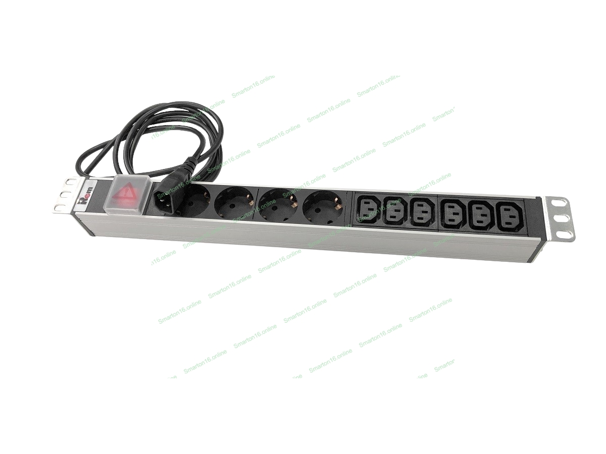 Блок розеток Rem-10 с выкл., 4 Sсhuko, 6 IEC 60320 C13, 10 A, алюм., 19", шнур 1,8 м. IEC 60320 C14 (R-10-4S-6C13-V-440-1.8)