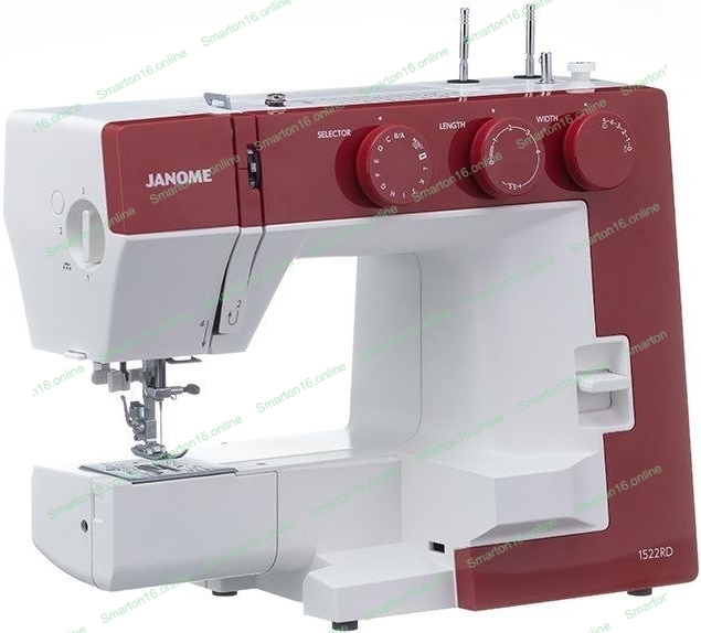 Швейная машина Janome 1522RD 25 операции, петля автомат, верт. челнок, нитевдеватель, мягкий, подарочный набор (шпульки, ножницы, сантиметровая лента, игольница)