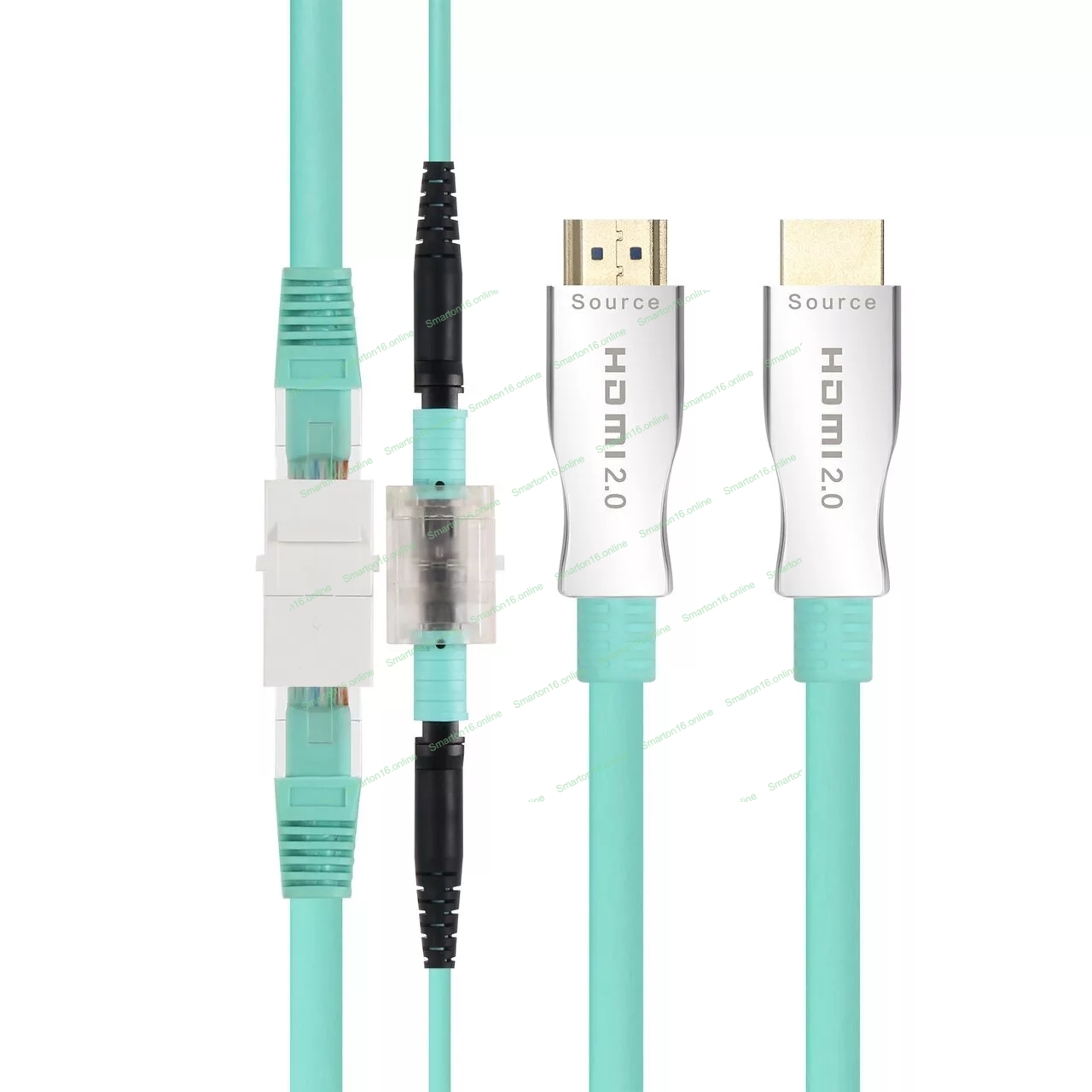 Преобразователи сигнала из меди в оптику находятся внутри разъемов. Дополнительного питания не требуется. Использование оптики позволяет передавать мультимедийный сигнал без потери качества на большие расстояния, чем при использовании медного кабеля. Оптика значительно более устойчива к внешним электро-магнитным помехам и сама помех для электронного оборудования не создает, что значительно расширяет сферу применения .