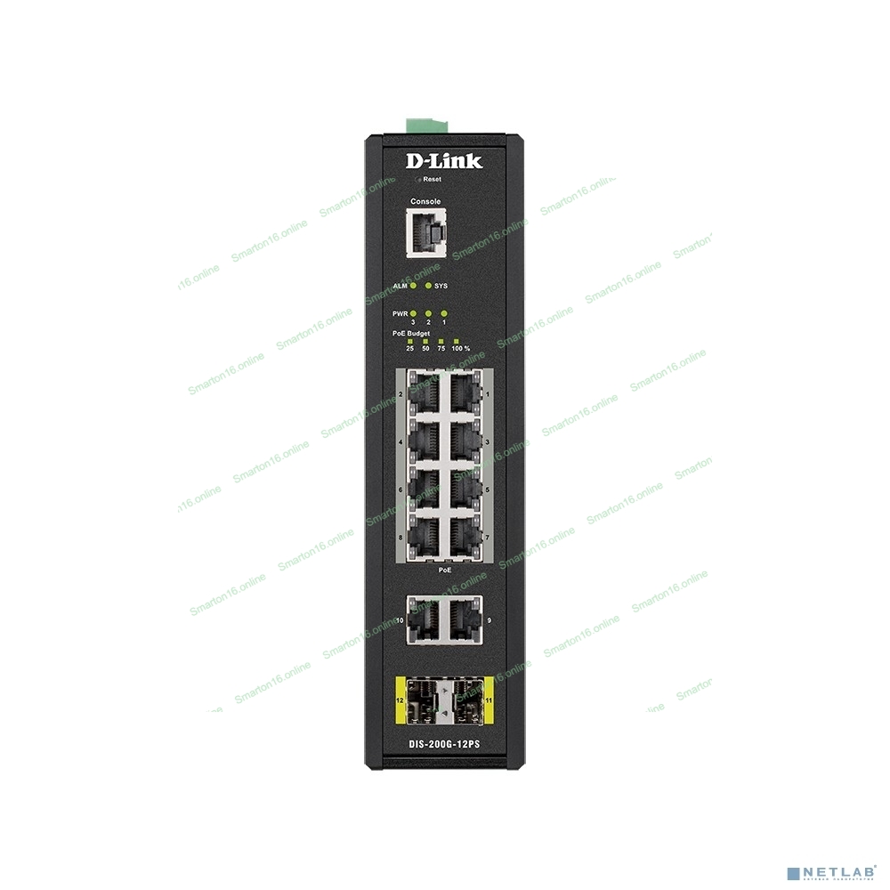 Коммутатор промышленный управляемый D-Link DIS-200G-12PS/A2A 2 уровня с 10 портами 10/100/1000Base-T и 2 портами 1000Base-X SFP (8 портов с поддержкой PoE 802.3af/802.3at (30 Вт), PoE-бюджет до 240Вт)