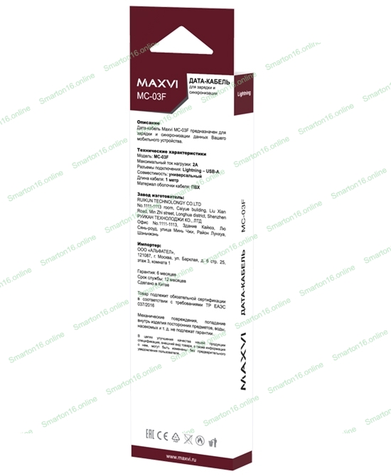 Кабель Maxvi MC-03F white USB-A - Lightning, 2A Плоский кабель, ток макс. нагрузки 2А, макс. напряжение 5V; стандарт USB 2.0; длина 1м, материал PVC, белый