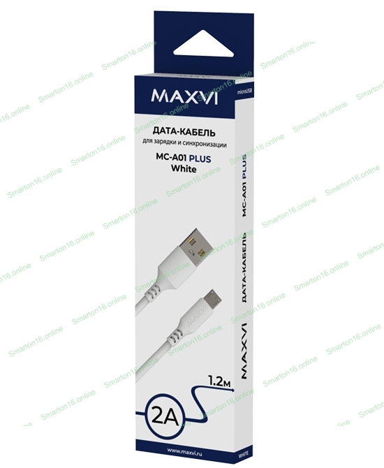 Кабель Maxvi MC-A01 plus white USB-A - microUSB, 2A ток макс. нагрузки 2А, макс. напряжение 5V; стандарт USB 2.0; длина 1.2м, материал PVC, белый
