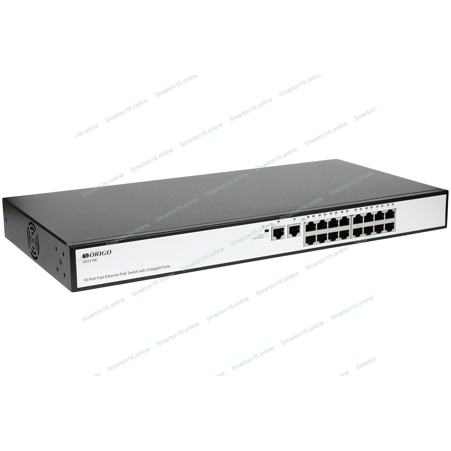 Коммутатор неуправляемый PoEORIGO OS1218P/190W/A1A 16x100Base-TX PoE+, 2x1000Base-T, PoE-бюджет 190 Вт, корпус металл