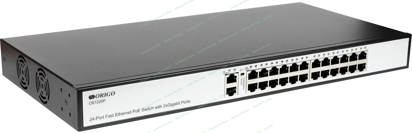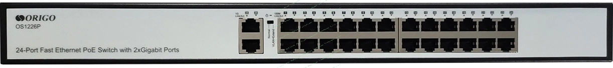 Коммутатор неуправляемый PoE ORIGO OS1226P/285W/A1A 24x100Base-TX PoE+, 2x1000Base-T, PoE-бюджет 285 Вт, корпус металл