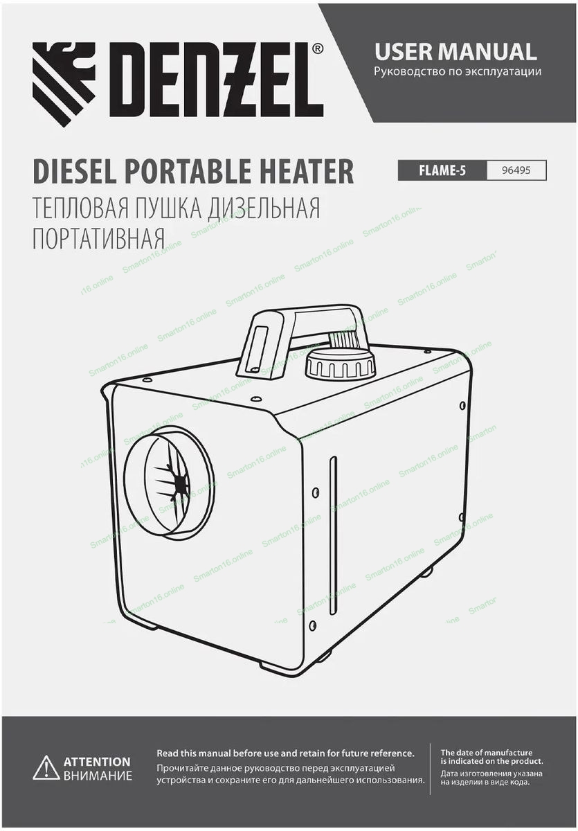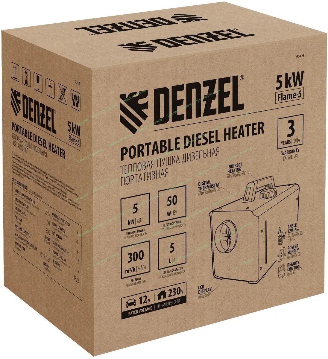 Дизельная тепловая портативная пушка Denzel Flame-5, 5кВт, 300м3/ч, непр.наг., циф. терм.
