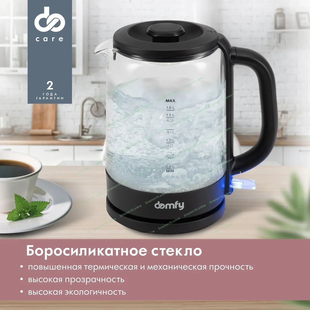 Чайник электрический Domfy DSB-EK304 1.7л. 2200Вт черный (корпус: стекло)