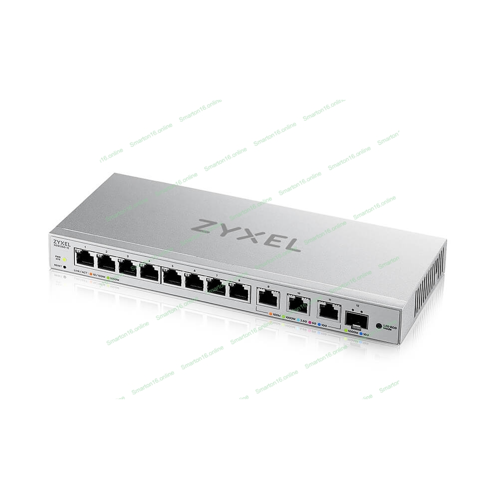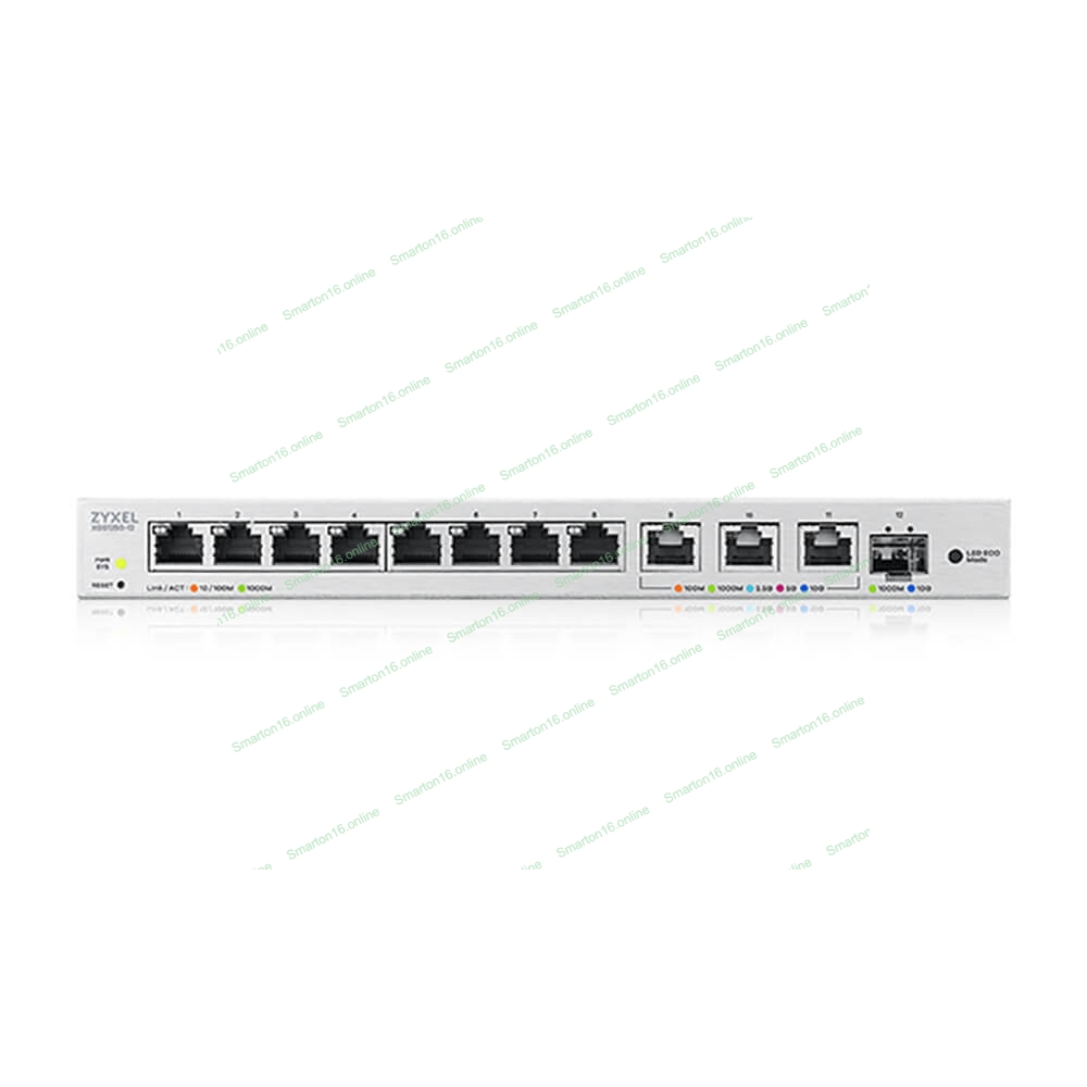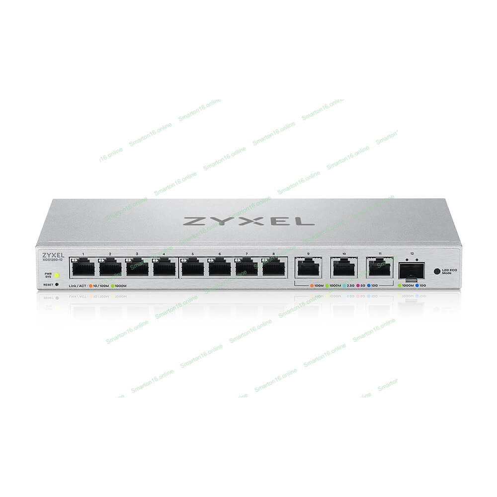 Коммутатор мультигигабитный Smart L2 коммутатор Zyxel XGS1250-12, 8xGE, 3x1/2,5/5/10G, 1xSFP+, кнопка LED ECO Mode, настольный