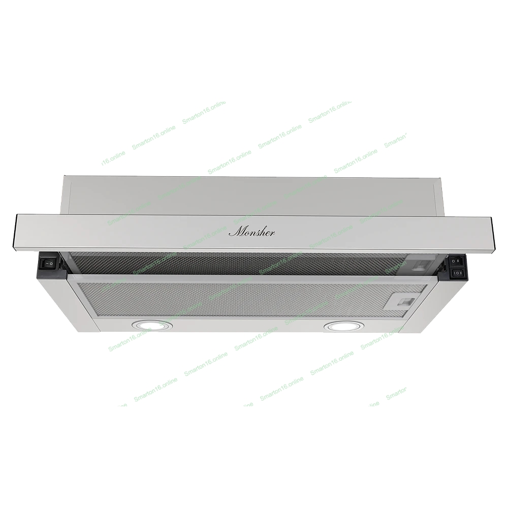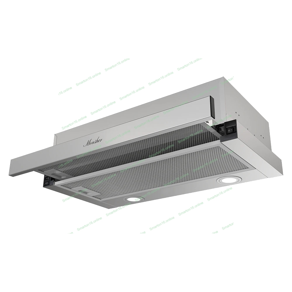 Встраиваемая вытяжка Monsher Loin 60 Acier, телескопическая, 60 см, High-Tech, макс. Производительность 650 м3/ч, 2 скорости, механическое управление, светодиодное освещение, уровень шума 53 дБ, нержавеющая сталь