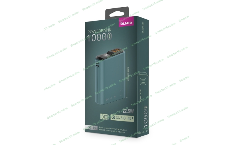 Портативный аккумулятор OLMIO QS-10, 10000mAh, 22.5W QuickCharge3.0/PowerDelivery, LCD, темно-зеленый
