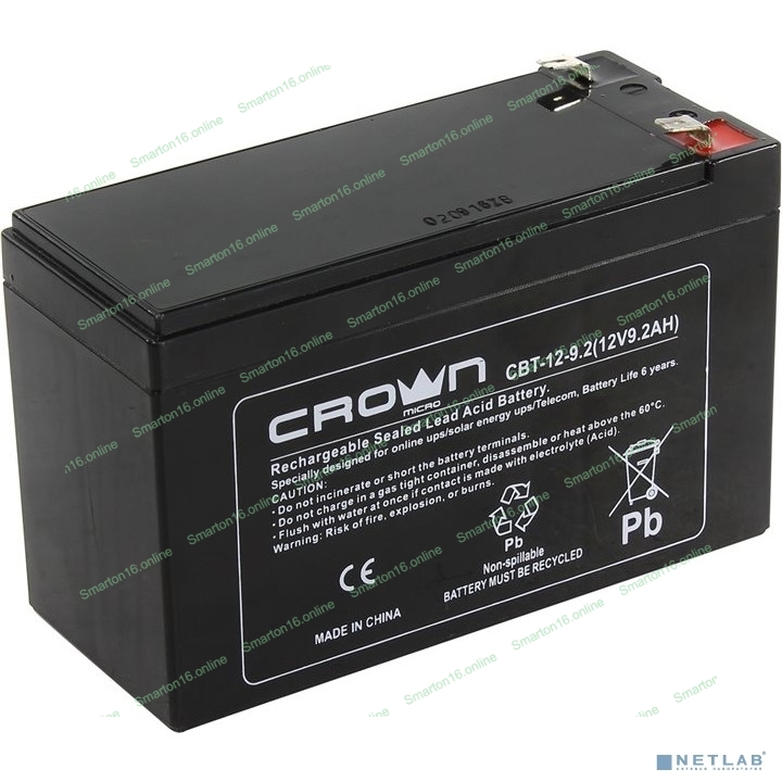 Батарея для ИБП CROWN CBT-12-9.2 (12V 9.2Ah) F2 срок службы 5 лет