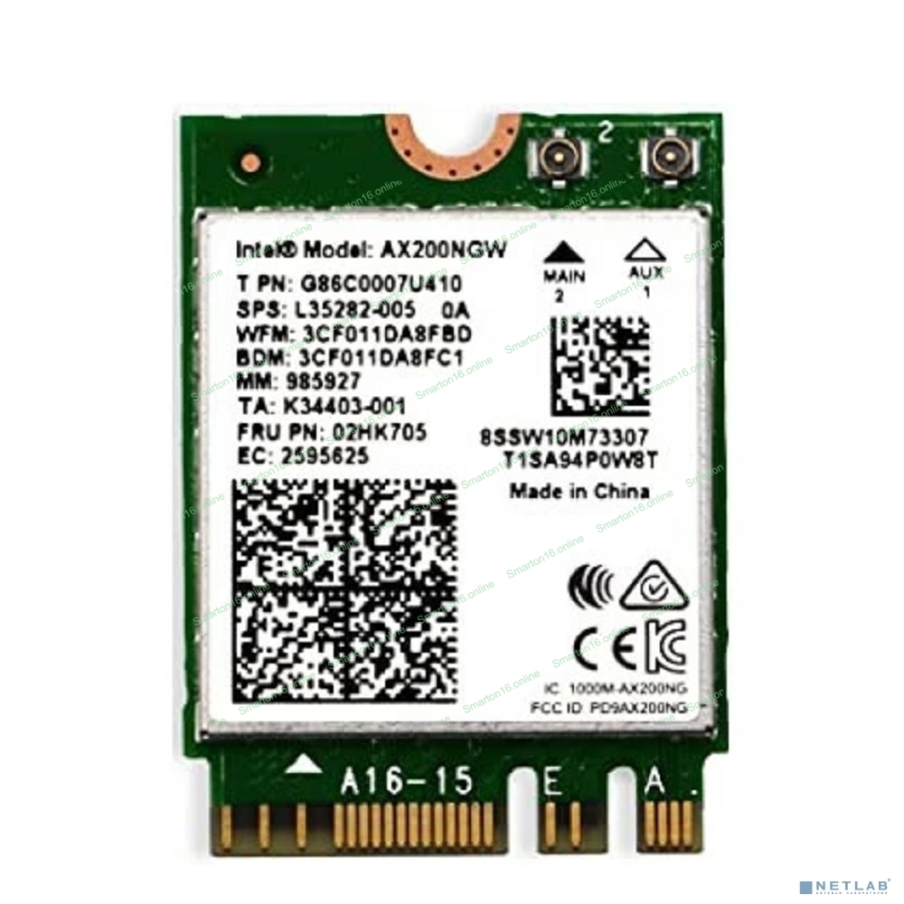 Плата сетевого контроллера Intel Wi-Fi 6 AX200, 2230, 2x2 AX+BT, No vPro, 985927